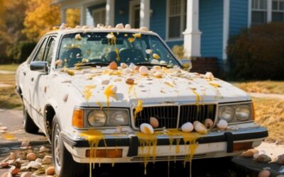 Als ich am Morgen vor Halloween aus dem Haus ging, war mein Auto mit Eigelb und Toilettenpapier bedeckt. „Mama ……
