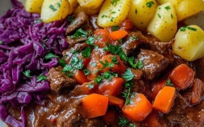 Deftiges Gulasch mit zartem Rindfleisch, Paprika und Möhren – perfekt für die kalte Jahreszeit!Zutaten (für 4 Portionen):1000 g Rindergulasch2 EL…