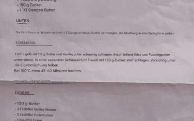 Zutaten: Boden: 2 mittelgroße „Petitków“-Krapfen, 1/3 Stange Butter. Käsemasse : 1 Becher Wieluński Hüttenkäse („mein Favorit“), 5 Eier, 1 Päckchen…