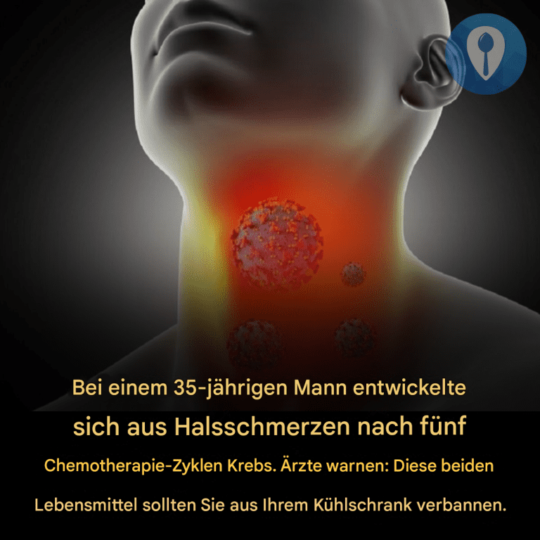 Ein eindrucksvolles Bild, das online kursiert, zeigt einen entzündeten, rotglühenden Hals, begleitet von einer eindringlichen Warnung: „Bei einem 35-jährigen Mann entwickelte sich nach fünf Chemotherapie-Zyklen Halskrebs. Ärzte warnen: Verbannen Sie diese beiden Lebensmittel aus Ihrem Kühlschrank.“ Die Botschaft soll alarmieren und suggerieren, dass alltägliche Lebensmittel im Kühlschrank Kehlkopfkrebs auslösen können – und dass das einfache Weglassen von „zwei Lebensmitteln“ eine lebensverändernde Diagnose könnte verhindern.