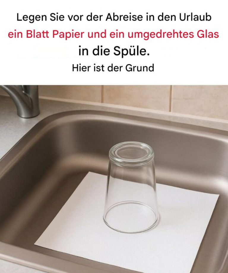 Wenn man es vernachlässigt, kann es zu unangenehmen Überraschungen kommen, wie üblen Gerüchen, Feuchtigkeitsansammlungen oder sogar Insekten. Glücklicherweise gibt es einen cleveren, kostenlosen Trick, der von Profis empfohlen wird und diese Probleme verhindern kann: Legen Sie einfach ein Papiertuch über den Abfluss und decken Sie ihn mit einem umgedrehten Glas ab. Diese kleine Geste kann einen großen Unterschied machen.