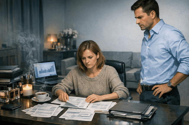 Lydia blieb in der Türschwelle seines Büros stehen. Sie trug einen abgetragenen Pullover – denselben, den sie schon seit Jahren trug. Andrej bemerkte es nicht. Er hatte schon lange aufgehört, solche Kleinigkeiten zu beachten, es sei denn, sie störten seine Komfortzone.