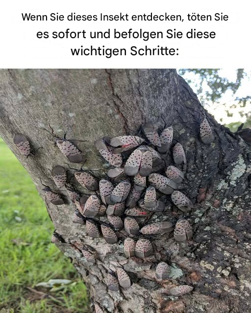 Bei diesem Insekt handelt es sich um die Gefleckte Laternenfliege ( Lycorma delicatula ) . Sie ist eine stark invasive Art, die eine ernsthafte Bedrohung für Landwirtschaft und Ökosysteme darstellt.