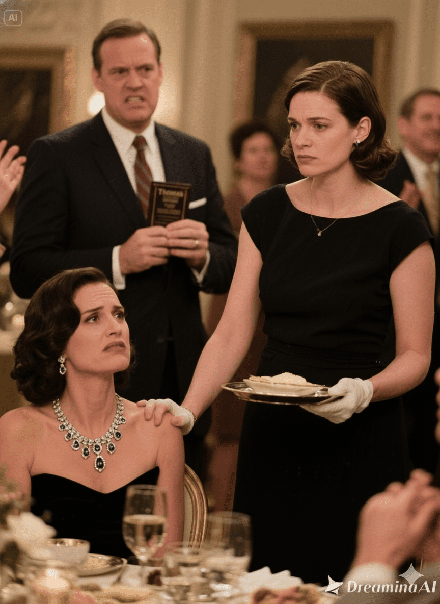 Ihr Gesicht rötete sich, als sie mit zitternden Fingern die Halskette öffnete. Die Diamanten funkelten im Licht, als sie sie mir reichte.