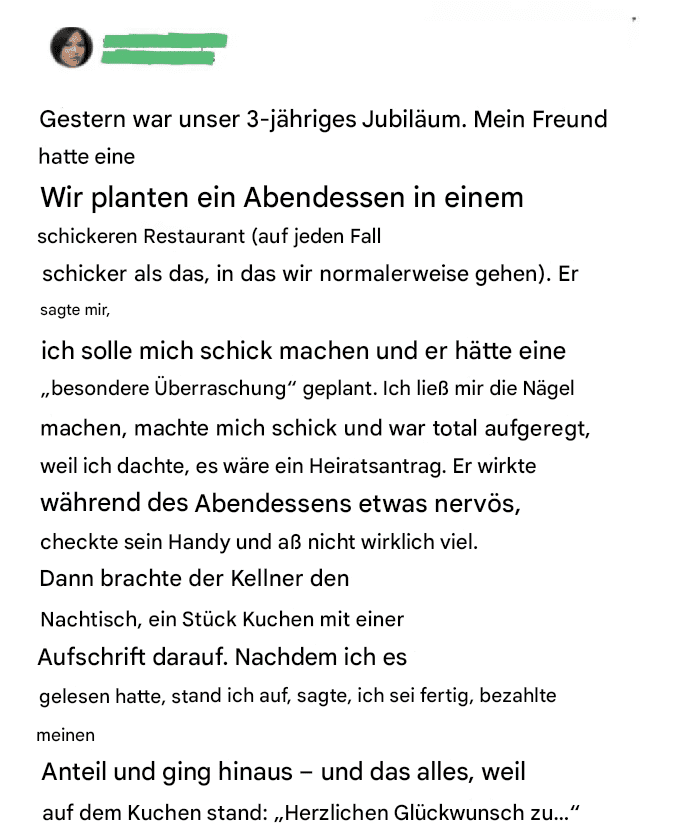 Und doch saß er da, grinste über den Tisch hinweg und wartete darauf, dass ich über den „Witz“ lachte.