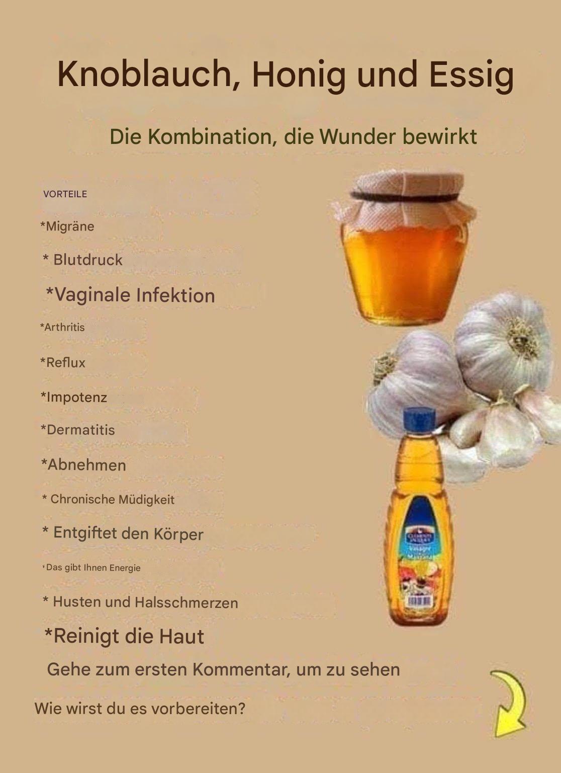 Gib Honig und Apfelessig dazu. Mische gut mit einem Holz- oder Plastiklöffel (vermeide Metall).