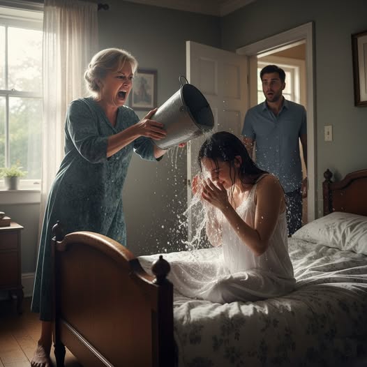 Ein eisiger Schock durchfuhr Emily Carters Körper, noch bevor sie die Augen öffnete. Sie sprang auf und keuchte, als das eiskalte Wasser ihren Pyjama und ihre Laken durchnässte. Ihr Haar klebte ihr im Gesicht, tropfte, und ihre Zähne begannen zu klappern.