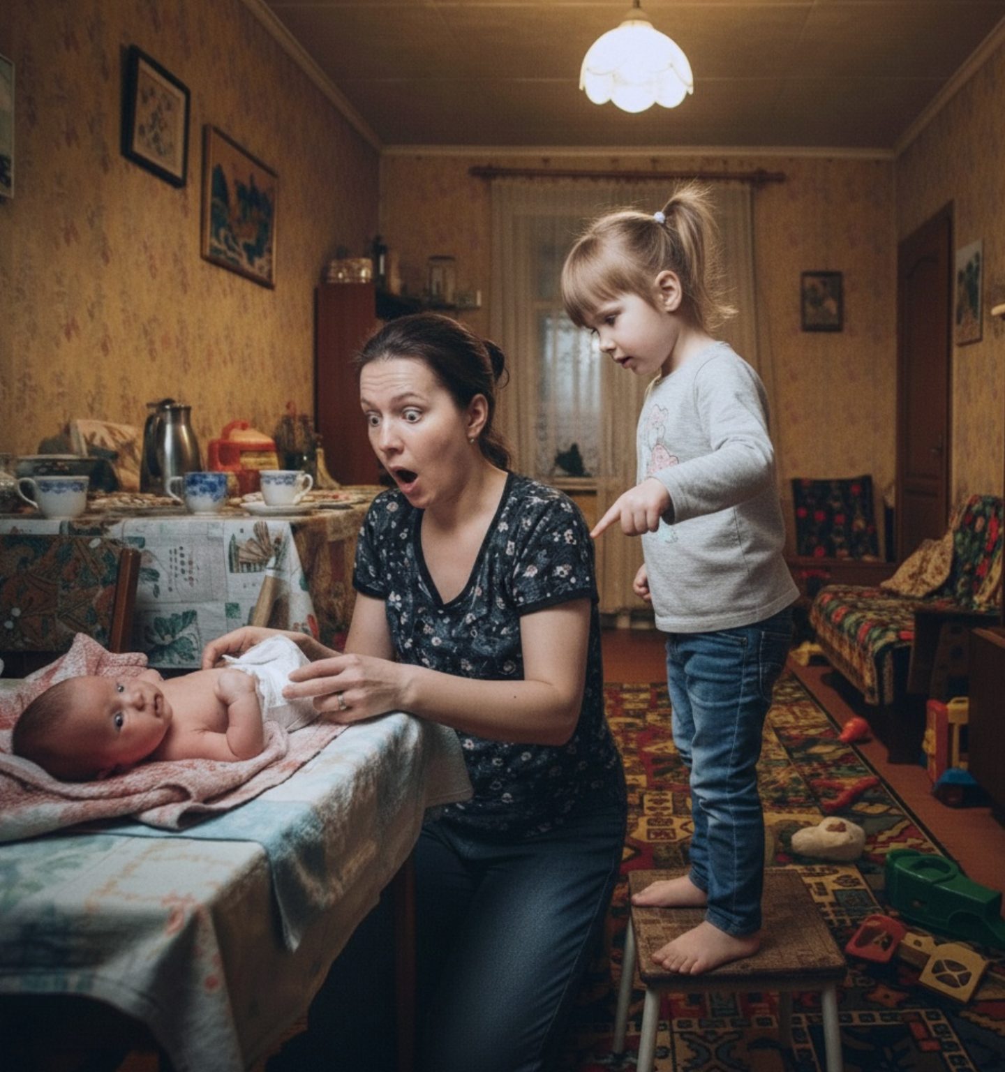 Lena saß auf dem Teppich neben dem Autositz und beobachtete ihn wie eine kleine Wache. „Mama, ich passe auf sie auf. Wenn sie anfängt zu weinen, sage ich es dir sofort.“