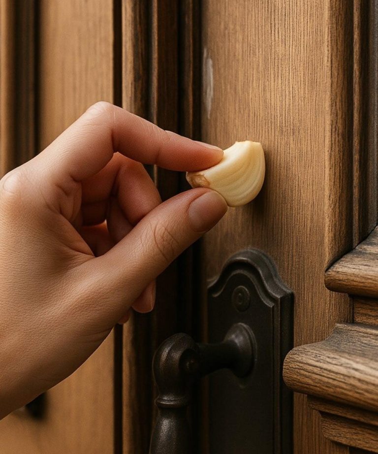 Dieser Artikel stellt eine einfache, völlig natürliche Methode zur Abwehr von Schädlingen im Haushalt vor: Reiben Sie eine frische Knoblauchzehe an der Innen- und Außenseite Ihres Türrahmens .